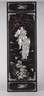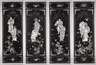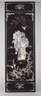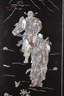 China, Anfang 20. Jh., hochrechteckige Holzpaneele, schwarz lackiert, sehr feine Einlegearbeiten in Perlmutt, dieser graviert und ausgetuscht, jeweils mit zwei Figuren in Landschaft, sehr guter Zustand, Maße 120 x 40 cm.