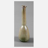 auch altertümlich als Tränengläschen bezeichnet, oströmische Provinzen, 1. bis 4. Jh. n. Chr., tropfenförmig, mit langem abgesetzten Hals, weißes Glas mit kleinen Luftblaseneinschlüssen, Oberfläche teilw. irisierend, Patinabildung innen, H ges. ca. 12,3 cm, D Bauch ca. 4 cm.
