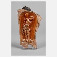 19. Jh., fossiles Elfenbein, beschnitzt und poliert, Darstellung des heiligen Sebastian als Ganzfiguren-Hochrelief, Altersspuren, H 14 cm.