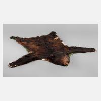 um 1930, mit voll präpariertem Kopf und eingesetzten Glasaugen, Fell partiell mit Verlusten, grüne Filzbordüre teils etwas lose, sonst guter Zustand, mit Gutachten des Kürschnermeisters Horst-Uwe Bönisch von 2017 sowie CITES-Papieren, Maße 185 x 220 cm.