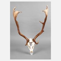 datiert 30. X. 1997, mit Besitzerannotation Strauweiler, kapitale Damwildschaufeln mit präpariertem Schädel, H 90 cm.