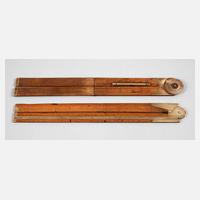 England., 19. Jh., einer gemarkt J. Rabone & Sons Birmingham England, der andere I & D Smallwood Birmingham, Buchsbaum mit gravierten Messingmontierungen, klappbare Modelle, einer mit eingelassener Libelle, Alters- und Gebrauchsspuren, L je ca. 6 cm.