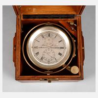 Anfang 20. Jh., Ziffernblatt gemarkt John Bruce 26 Wapping Liverpool, Modellnr. 1724, massives Eichengehäuse mit verglastem Deckel, Uhrwerk mit kardanischer Aufhängung, versilbertes Ziffernblatt mit Anzeige der Gangreserve und kleiner Sekunde, römische Zahlen, fkt.-tüchtig, in gutem Zustand, mit orig. Schlüssel, Maße 18 x 18 x 18 cm.
