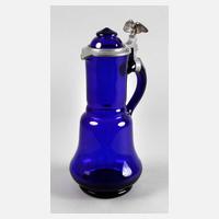 um 1860, kobaltblaues Glas, blasiger Abriss, Zinnmontierung mit plastischem Adler an der Daumenrast, gravierter Besitzername F. Friedrich, guter Zustand, H 30 cm.