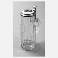 datiert 1906, bezeichnet III. Prämie Herbst- Preisschießen, Frankfurter Schützenverein 1906, farbloses Glas, facettiert mit Emailmalerei und Vergoldung, Zinndeckel, guter Zustand, H 19 cm.