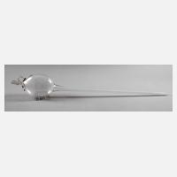 19. Jh., farbloses, leicht schlieriges Glas, Flaschenform mit verdickter Mündung und freigeformtem angesetzten Henkel, leichte Gebrauchsspuren, L 91 cm.