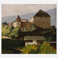 sommerlicher Blick auf die Burg Summersberg über dem Villnösstal, bei Gufidaun in Südtirol, minimal pastose Malerei mit charaktervollem Pinselduktus in zurückhaltender Farbigkeit, Öl auf Karton, um 1920, links unten monogrammiert ”A. U.” und rechts undeutlich signiert ”Andreas Untersberger”, rückseitig bezeichnet und betitelt ”Von Andreas Untersberger Burg Sommersberg (meint: ”Summersberg”) in Gufidaun bei Klausen Südtirol”, gering restauriert, gerahmt, Falzmaße ca. 20 x 22 cm. Künstlerinfo: auch André Untersberger, arbeitete auch unter dem Pseudonym ”A. Jünger”, österreichischer Maler, Illustrator und Zeichner (1874 Gmunden bis 1944), Sohn und Schüler des Holzschnitzers Josef Untersberger, zunächst Mitarbeit in der väterlichen Schnitzwerkstatt für religiöse Kunst, studierte 1895-99 an der Universität für angewandte Kunst Wien, 1901-05 wechselnde Aufenthalte in Wien und München, ab 1905 in München ansässig, fertigte vor allem Kinderbuchillustrationen und Entwürfe für religiöse Postkarten für den Verlag Ars Sacra, beschickte die Ausstellungen im Münchner Glaspalast, Mitglied der Münchner Künstlergenossenschaft, der Künstlergruppe 48 und im Reichsverband bildender Künstler Deutschlands, tätig in München, Quelle: Dressler, Fuchs, Ries und englische Wikipedia.