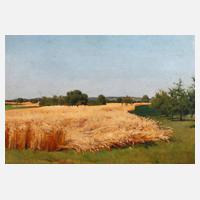Blick in weite Erntelandschaft mit Kornfeld, unter strahlend blauem Himmel, im hellen Sonnenlicht, minimal pastose Landschaftsmalerei mit charaktervollem Pinselduktus, Öl auf Hartfaser, rechts unten signiert und datiert ”C. Wegmann 1943”, rückseitig Rahmungsetikett Zürich, in Goldstuckrahmen gerahmt, Falzmaße ca. 43,5 x 63 cm. Künstlerinfo: Schweizer Maler, Graphiker, Zeichner, Mosaik- und Sgraffitokünstler (1904 Marthalen bis 1987 Marthalen), zunächst Lehre zum Dekorationsmaler, 1921-25 Schüler der Kunstgewerbeschule Zürich bei Paul Bodmer, Otto Morach, Rudolf Mülli und Ernst Georg Ruegg, unternahm Studienreisen nach Italien und Frankreich, unterhielt zeitweise ein gemeinsames Atelier mit seinem Sohn Karl Wegmann (geboren 1936 in Winterthur) in Marthalen, 1982 Ehrung mit dem Preis der Carl-Heinrich-Ernst-Kunststiftung Winterthur, spätestens ab 1937 Mitglied der Künstlergruppe Winterthur, tätig in Marthalen im Kanton Zürich, Quelle: Sikart und Info der Künstlergruppe Winterthur.