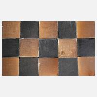 ungemarkt, 19. Jh., quadratische Platten anthrazit und hellbraun glasiert, aus der Kapelle zu Schloss Burgk in Thüringen (Fotos anbei), Maße 50 qm, 0,22m x 0,22m, S 4,0 cm.