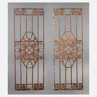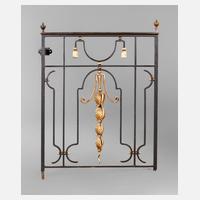 um 1900, Schmiedeeisen, in alter Farbfassung, aufwendiger ornamentaler Dekor, der äußere Rahmen mit mehreren Bohrlöchern zur seitlichen Verschraubung, korrodiert, H 112 x B 41 cm.