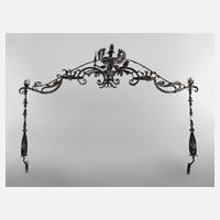Bronze gegossen, 19. Jh., dunkelbraun gefasst, teilweise vergoldet, der Handlauf und Basenabschlüsse aus Bronze, seitlich Scharnier mit Wandhalterung, geringe Altersspuren, Maße 94 x 79 cm.