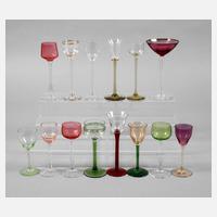 um 1900, verschiedene Hersteller, eins entworfen von Johann Vincenz Cissarz, Ausführung Rheinische Glashütten AG, Köln-Ehrenfeld, farbiges und farbloses Glas, teilweise geätzt oder geschliffen, guter Zustand, H max. 15,3 cm.
