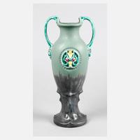 Biela bei Bodenbach, um 1900, Reliefmarke, Modellnummer 1136, Schriftzug Austria, hellgrauer Scherben, farbig matt und glänzend glasiert, Henkelvase mit beidseitig reliefiertem Ornament, geringe Gebrauchsspuren, H 36 cm.
