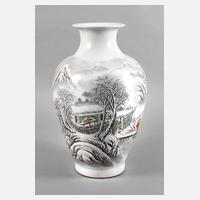 China, um 1920, am Boden mit gedruckter Vier-Zeichen-Marke, signiert He Xuren, cremefarbenes Porzellan in sehr dekorativer Emailbemalung, stark gebauchter Korpus mit figürlicher Szene in verschneiter Winterlandschaft, H ca. 55 cm.