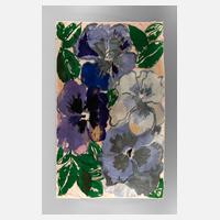 um 1930, unsigniert, großflächiges Stiefmütterchenmotiv, starke Ablösespuren im Innenbereich, Kette und Schuss sichtbar, Lochbildung ca. 24 x 10 cm, Maße 237 x 243 cm.