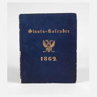 auf das Jahr 1862, Format Gr. 8°, 126 S., Gelbschnitt, in originalem blauen Pappeinband mit goldenem Deckelaufdruck, Einband am Rücken lädiert, altersgemäß guter Zustand.