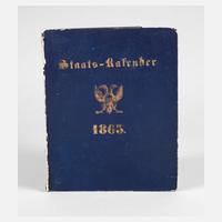 auf das Jahr 1863, Format Gr. 8°, 97 S. und XXX. S., Gelbschnitt, in originalem blauen Pappeinband mit goldenem Deckelaufdruck, Deckel löst sich vom Block, altersgemäß guter Zustand.