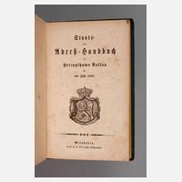 für das Jahr 1838, Format 8°, X und 265 S., enthält Genealogie des Herzoglichen Hauses Sachsen-Meiningen, originaler bedruckter Pappeinband, altersentsprechend sehr gute Erhaltung.