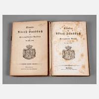 für das Jahr 1854 und das Jahr 1866, Format 8°, 249 S. und 308 S., Einbände der Zeit, 1854 mit normalen Alters- und Gebrauchsspuren, 1866 Deckel lose und Rücken beschädigt.