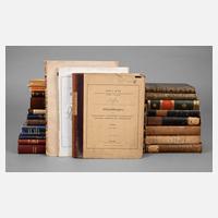 und 1. Hälfte 20. Jh., ca. 39 Bücher und Hefte Fachliteratur, darunter 1) J. Lindley/W. Hutton, The Fossil Flora of Great Britain or Figures and Descriptions of the vegetable remains found in a fossil state in this country, Vol. II. und III., London 1833–1837, Format 8°, 206 und 207 S., zahlreiche Illustrationen, Rückendeckel fehlen, Halbledereinband, innen gute Erhaltung mit normalen Altersspuren, 2) Th. H. Huxley, Grundzüge der Anatomie der wirbellosen Thiere, Leipzig 1878, 3) J. Loeb, Einleitung in die vergleichende Gehirnphysiologie und vergleichende Psychologie mit besonderer Berücksichtigung der wirbellosen Thiere, Leipzig 1899, 4) J. Sachs, Handbuch der Experimental-Physiologie der Pflanzen, Leipzig 1865, 5) L. Rabenhorst, Flora Europaea algarum aquae dulcis et submarinae, sectio I., Lipsiae 1864, 6) J. G. Agardh, Epicrisis systematis Floridearum, Lipsiae 1876, 7) Ders., Species genera et ordines floridearum, vol. II., pars III., Lipsiae 1863, 8) Göttinger Studien 1847, I. Abt. Mathematische und naturwissenschaftliche Abhandlungen, 1. Lieferung, 9) C. H. Schultz, Die Natur der lebendigen Pflanze, 1. Teil, Berlin 1823, Format 8°, 693 S. und 4 Kupferstichtafeln, Halbledereinband, gute Erhaltung, 10) A. Ecker, Die Anatomie des Frosches, Ein Handbuch für Physiologen, Ärzte und Studierende, Braunschweig 1864; insgesamt unterschiedliche Erhaltungszustände.
