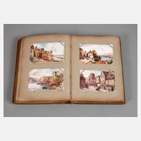 um 1905, ca. 140 Künstlerkarten mit Ansichten aus dem Vereinigten Königreich, in Jugendstilalbum mit floralem Deckelmotiv, normale Alters- und Gebrauchsspuren.