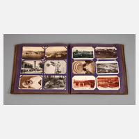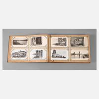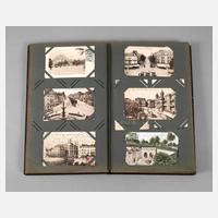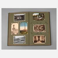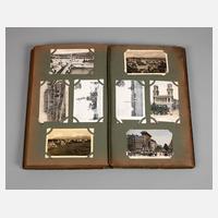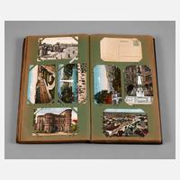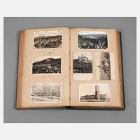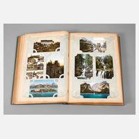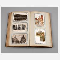 meist vor 1930, fast 400, vorwiegend topografische Ansichtskarten, u.a. Die Ehrenburg a. d. Mosel, Köln Partie im Zoologischen Garten, Düsseldorf Landskrone, daselbst Goldene Brücke im Hofgarten, Nahepartie Kreuznach, Trier Porta Nigra, Veste Coburg, Wiesbaden Römertor, Externsteine, in Jugendstilalbum, normale Alters- und Gebrauchsspuren, H Album ca. 38 cm.