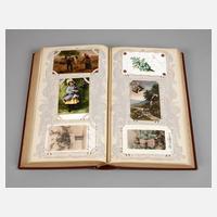 1. Hälfte 20. Jh., ca. 450 Postkarten, Gruß- und Glückwunschkarten, Ornamentkarten, Ostern, Weihnachten, Neujahr, Pfingsten, Serienpostkarten, in dekorativem und gut erhaltenem Album um 1900, normale Altersspuren, H Album ca. 40,5 cm.