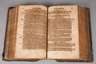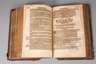 Itinerarium sacrae scripturae. Das ist: Ein Reisebuch über die gantze Heilige Schrift/In zwey Bücher getheilet. Der erste Theil begreifft alle Reisen der lieben Patriarchen ..., Der Ander gehet auff daß Newe Testament ..., Zuvor gemehret mit einem Büchlein De Monetis et Mensuris, ... Mit einer Vorrede des Herrn D. Martini Chemnitij, Druckort Magdeburg bei Joachim Boel, verlegt bei Ambrosius Kirchner 1621, Format 4°, 1. Teil mit 240 S. u. 12 Blatt, 2. Teil mit 102 S. u. 7 Blatt, Teil Monetis mit 28 S. u. 3 Blatt, Teil ”über das Buch Jusua” mit 38 S., Seiten vollständig sowie auch die zahlreichen Holzschnitte (unkoloriert), mit Ziervignetten, Holzschnitte mäßig verblasst bzw. nicht erster Güte gedruckt, Druckfehler bzw. Unsauberkeiten in der Bezeichnung der Weltkarten und der Seitennummern sowie Seitenüberschriften, mäßiger Insektenfraß – danach zweites Buch mit eingebunden: Autor Gregor Strigenitz: Ionas, das ist Außlegung der wunderbaren und doch gantz lehrhafftigen und trostreichen Historien von dem Propheten Jona, wie derselbe .... In hundert und zwey und zwantzig Predigten abgetheilet ..., Leipzig bei Bartholomäus Voigt 1602, 459 S. u. 19 Blatt, unkollationiert, teilweise Wasserschaden, zusammen in prächtigem Ledereinband der Zeit (restaurierungsbedürftig), Buchschließen fehlen.