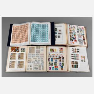 1955 bis Ende, sechs Alben als Auflösung DDR (meist postfrisch), mit 70er und 80er Jahren, überkomplett, viel Randstücke, dazu MH 5-Jahr-Plan, Mappe mit ca. 50 FM-Markenbogen Aufbau DDR (klein und groß) und Flugpost.