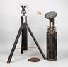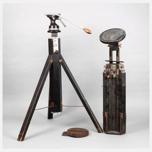 um 1900, ungemarkt, Eiche massiv, dunkel gefasst, klappbare dreibeinige Modelle mit Montierungen aus Messing bzw. Gusseisen, stärkere Alters- und Gebrauchsspuren, Maße min. 80 und 100 cm.