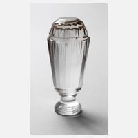 wohl Böhmen, Mitte 20. Jh., polygonal facettiertes Klarglas mit Schliffdekor, Besitzername in Schreibschrift, gute Erhaltung, H 8,5 cm.