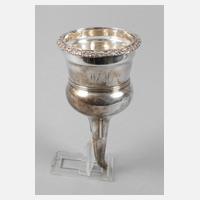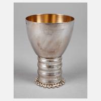 Hanau, um 1920, gestempelt Halbmond, Krone, 800 und Herstellermarke, innen vergoldet, Wandung mit gravierter Krone und Monogramm JG, im originalen Kasten mit Wappen Perpetua fide (stets zuverlässig und treu), guter Zustand, H 9,5 cm, G ca. 116 g.