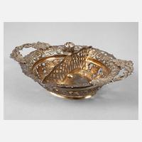 19. Jh., ungepunzt, Silber geprüft, Fuß und Schale vergoldet, Korpus aus gekordelten Drähten fein geflochten, getragen von einem vollplastischen Vogel, etwas gedellt, sonst guter Zustand, H 7 cm, G ca. 123 g.