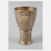 19. Jh., gestempelt 13 Lot, Tremulierstrich, ungedeutete Kreuzmarke und eine weitere unleserliche Punze, hohl gearbeitete, handgetriebene feine Handarbeit, innen Reste alter Vergoldung, guter altersgemäßer Zustand, H 22 cm, G ca. 541,8 g.