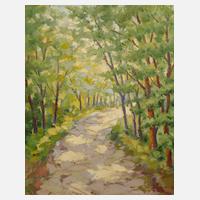 frühlingshafte Waldlandschaft, pastose Landschaftsmalerei in Spachteltechnik, Öl auf Leinwand, rechts unten signiert und datiert ”Wohlrab 1960”, rückseitig auf der Leinwand signiert ”Wohlrab” und Stempel auf dem Keilrahmen ”Nachlass Hans Wohlrab, 1905–1978, Walter Wohlrab, Frankfurt a. M.“, gerahmt, Falzmaße ca. 55,5 x 45 cm. Künstlerinfo: dt. Maler, Zeichner, Graphiker, Kunsthistoriker und Porzellandesigner (1905 Eger [Cheb] bis 1978 Nabburg/Oberpfalz), Sohn und Schüler des Dresdner Malers Karl Wohlrab (1873 bis nach 1930), studierte 1932–37 an der Akademie München bei Fritz Hellmut Ehmcke, Josef Hillerbrand und Meisterschüler von Constantin Gerhardinger, beschickte 1941–43 die Große Deutsche Kunstausstellung im Haus der Deutschen Kunst München, bis 1945 in Eger ansässig, später tätig in Breitbrunn am Chiemsee, Samerberg und Frankfurt am Main, ab 1961 in Amberg, in den 1950er Jahren als Porzellandesigner für die Kunstabteilung der Porzellanmanufaktur Rosenthal in Selb tätig, Quelle: Glassl-Schreiner ”Kunst in Eger – Stadt und Land” und Internet.