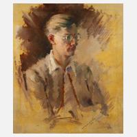 Brustbildnis eines jungen Mannes mit Brille im Halbprofil, minimal pastose, studienhaft-flott mit breitem Pinselduktus erfasste Bildnismalerei, Öl auf Leinwand und Keilrahmen, rechts unten signiert und datiert ”Wohlrab (19)50”, rückseitig gestempelt „Hans Wohlrab, Frankfurt am Main, Hohenstaufenstraße 2“ und „Nachlass Hans Wohlrab, 1905–1978, Walter Wohlrab, Frankfurt a. M.“, Leinwand gedellt, etwas restaurierungsbedürftig, ungerahmt, Maße ca. 80,5 x 70 cm. Künstlerinfo: dt. Maler, Zeichner, Graphiker, Kunsthistoriker und Porzellandesigner (1905 Eger [Cheb] bis 1978 Nabburg/Oberpfalz), Sohn und Schüler des Dresdner Malers Karl Wohlrab (1873 bis nach 1930), studierte 1932–37 an der Akademie München bei Fritz Hellmut Ehmcke, Josef Hillerbrand und Meisterschüler von Constantin Gerhardinger, beschickte 1941–43 die Große Deutsche Kunstausstellung im Haus der Deutschen Kunst München, bis 1945 in Eger ansässig, später tätig in Breitbrunn am Chiemsee, Samerberg und Frankfurt am Main, ab 1961 in Amberg, in den 1950er Jahren als Porzellandesigner für die Kunstabteilung der Porzellanmanufaktur Rosenthal in Selb tätig, Quelle: Glassl-Schreiner ”Kunst in Eger – Stadt und Land” und Internet.