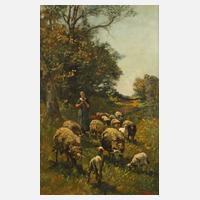 poesievolle, gering pastose, impressionistische Genremalerei mit lockerem, breitem Pinselduktus, Öl auf Leinwand, um 1900, rechts unten doppelt übereinander in Rot und Schwarz unleserlich signiert, Craquelure, doubliert, restauriert, schön in Goldstuckleiste gerahmt, Falzmaße ca. 60 x 40,5 cm.