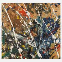 pastose, tachistische Malerei, Öl auf Rupfen, unsigniert, rückseitig auf dem Keilrahmen datiert 1961 und altes Nummernetikett 860, schlicht gerahmt, Falzmaße ca. 71 x 50,5 cm.