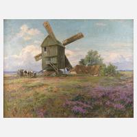 sommerlicher Blick auf die alte Windmühle in Staupitz, im Vordergrund ein Bauer mit Ochsengespann, dahinter ragen die Dächer eines Zweiseitenhofs hervor, leicht pastose Landschaftsmalerei, rechts unten signiert, Öl auf Leinwand, in einer gedreht gerippten Goldstuckleiste gerahmt, diese mit kleiner Fehlstelle, sonst guter altersgemäßer Zustand, Falzmaß 81 x 105 cm, gesamt 102 x 124 cm. Künstlerinfo: dt. Landschaftsmaler und Aquarellist (1858 Leipzig bis nach 1936 Dresden), studierte an der Akademie in Leipzig und in Dresden, Schüler von Friedrich Preller d.J., bereiste Italien, Mitglied der Allgemeinen Deutschen Kunstgenossenschaft, Bilder in zahlreichen deutschen Museen, Quelle. Thieme-Becker und Internet.