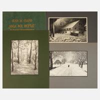 1923 gab Eiland sein Mappenwerk ”Seele der Heimat” mit 18 auf teils farbigen Karton montierten Steinzeichnungen heraus, daraus vorliegend 11 Lithos (Blatt 1; 4–9; 11–13; 15) mit erzgebirgischen Motiven und symbolistischen Waldlandschaften, der Mystiker Eiland sah in seinen Arbeiten ”den stillen Gruß eines Herzens an Menschen, die sich eins fühlen im Wissen um die allumfassende göttliche Einheit und seine Erhabenheit im Größten wie auch Kleinsten aller Natur. Mögen sie in diesem Geiste Brücken schlagen unter Suchenden”, je in der Litho signiert und auf dem Unterkarton als ”Originalsteinzeichnung” bezeichnet, betitelt, teils mit Gedicht oder Noten versehen, nummeriert und signiert, dazu kleineres, grünes Deckblatt, Lithos in unterschiedlichen Formaten, Kartonmaße je ca. 55 x 53 cm. Künstlerinfo: dt. Landschaftsmaler, Lithograph und Verleger (1889 Zwickau bis nach 1943), Ausbildung zum Zeichenlehrer, unternahm Studienreisen nach Schweden und der Schweiz, ab 1916 in Olbernhau im Erzgebirge ansässig, ab ca. 1923 in Dresden, betrieb hier ein Atelier und den Verlag für Deutsche Art, unterhielt Korrespondenz mit dem Schriftsteller und Reichsaußenminister Walther Rathenau, Mitglied im Reichsverband bildender Künstler Deutschlands, tätig in Olbernhau und Dresden, Quelle: Dressler, Vollmer, Saur ”Bio-Bibliographisches Künstlerlexikon” und Wikipedia.