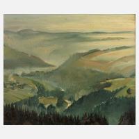 Blick in ein teils nebelverhangenes, bewaldetes Tal, hierbei könnte es sich um das Schwarzwassertal handeln, teils lasierende Landschaftsmalerei mit wenigen pastosen Akzenten in gedeckter Farbigkeit, Öl auf Hartfaserplatte, um 1970–80, links unten signiert „R. Fleischer“, reinigungsbedürftig, gerahmt, Falzmaß ca. 34 x 40 cm. Künstlerinfo: dt Maler und Grafiker (1915 Zschopau bis 1984 Karl-Marx-Stadt, heute Chemnitz), Lehre als Dekorationsmaler, 1933–39 Studium an der Akademie für Kunstgewerbe in Dresden bei Erich Zschiesche und Alexander Baranowsky, 1942–43 Studium an der Hochschule für Bildende Künste Dresden bei Hanns Hanner, ab 1945 freischaffend tätig, auf zahlreichen Ausstellungen vertreten, Quelle: Eisold “ Künstler in der DDR”, Vollmer, AKL und Wikipedia.