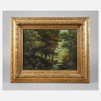 Rahmen um 1860/70, beigegeben Gemälde Öl/Lwd., signiert E. Henrich? und datiert 1903, profilierter und gekehlter sowie aufwendig gestuckter und goldbronzierter Gründerzeitrahmen mit ornamentaler Verzierung und übergreifenden Eckkartuschen, Ecken auf Gehrung geschnitten, Erhaltungsmängel und rest.bed., partiell alt rest., Falzmaß H 33,5 x B 44 cm, Gesamtmaß H 49,5 x B 60 cm.