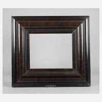 Rahmen aus ca. 7 cm breiter, steigend profilierter, schwarzbraun gefasster Holzleiste mit schmaler Goldinnenkante, Gehrungen auf Eck geschnitten, geringe Altersspuren, Falzmaße ca. 59 x 47 cm.