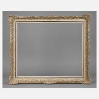 Rahmen aus ca. 6 cm breiter, steigend profilierter, ornamental mit Rank- und Bandelwerk gestuckter, mit Eck- und Mittelkartuschen versehener, sparsam vergoldeter und beige patinierter Holzleiste, Gehrungen über Eck gearbeitet, gering restaurierungsbedürftig, Falzmaße ca. 61 x 51 cm.