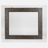 um 1900, Holz geschnitzt sowie braun gebeizt, partiell goldbronziert, Bekrönung mit verschlungenen Bändern verziert, diese am unteren Rand des Rahmens leicht ausschwingend, minimale Erhaltungsmängel, Falzmaß H 115,8 x B 77,2 cm, Gesamtmaß H 135,5 x B 107 cm.