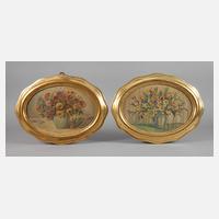 Rahmenpendants aus ca. 7 cm breiter, einer breiten Berliner Leiste ähnlich profilierter, gestuckter, partiell vergoldeter bzw. sekundär rotbraun überfasster Holzleiste, Gehrungen geschnitten, 1 x Fehlstelle in der Stuckierung, sonst geringere Altersspuren, Falzmaße 65,5 x 37 cm bzw. 64 x 42,5 cm.