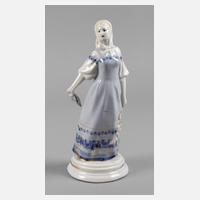Leningrader Porzellanmanufaktur, um 1920, kyrillische grüne Marke LF, weiterer Stempel KF, junge Tänzerin in Tracht, ein Zweig und ein Tuch in den Händen haltend, Unterglasurbemalung und Vergoldung, diese partiell stärker berieben, sonst unbeschädigt, H 28 cm.