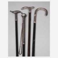 Russland, Ende 19. Jh., teilweise datiert, Griffstücke aus Silber, fein dekoriert in Niellotechnik, alle gepunzt, geschwärzte Hartholzschüsse, Alters- und Gebrauchsspuren, H max. 108 cm.