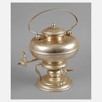 1930er Jahre, gestempelter Doppeladler sowie Nummer 20 oder Hersteller RO, Nickelsilber, zweiteilig, mit Stövchen und Brenner sowie Kanne mit abnehmbarem Deckel, Gebrauchs- und Altersspuren, H 41 cm.