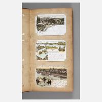 Album datiert 1898, ca. 200 Stück, vorwiegend topographische Motive vor 1940, u.a. Bad Münster, Hessen, Rhein, wenige farbig lithogr., Altersspuren, Maße Album ca. 28,5 x 23,5 cm.